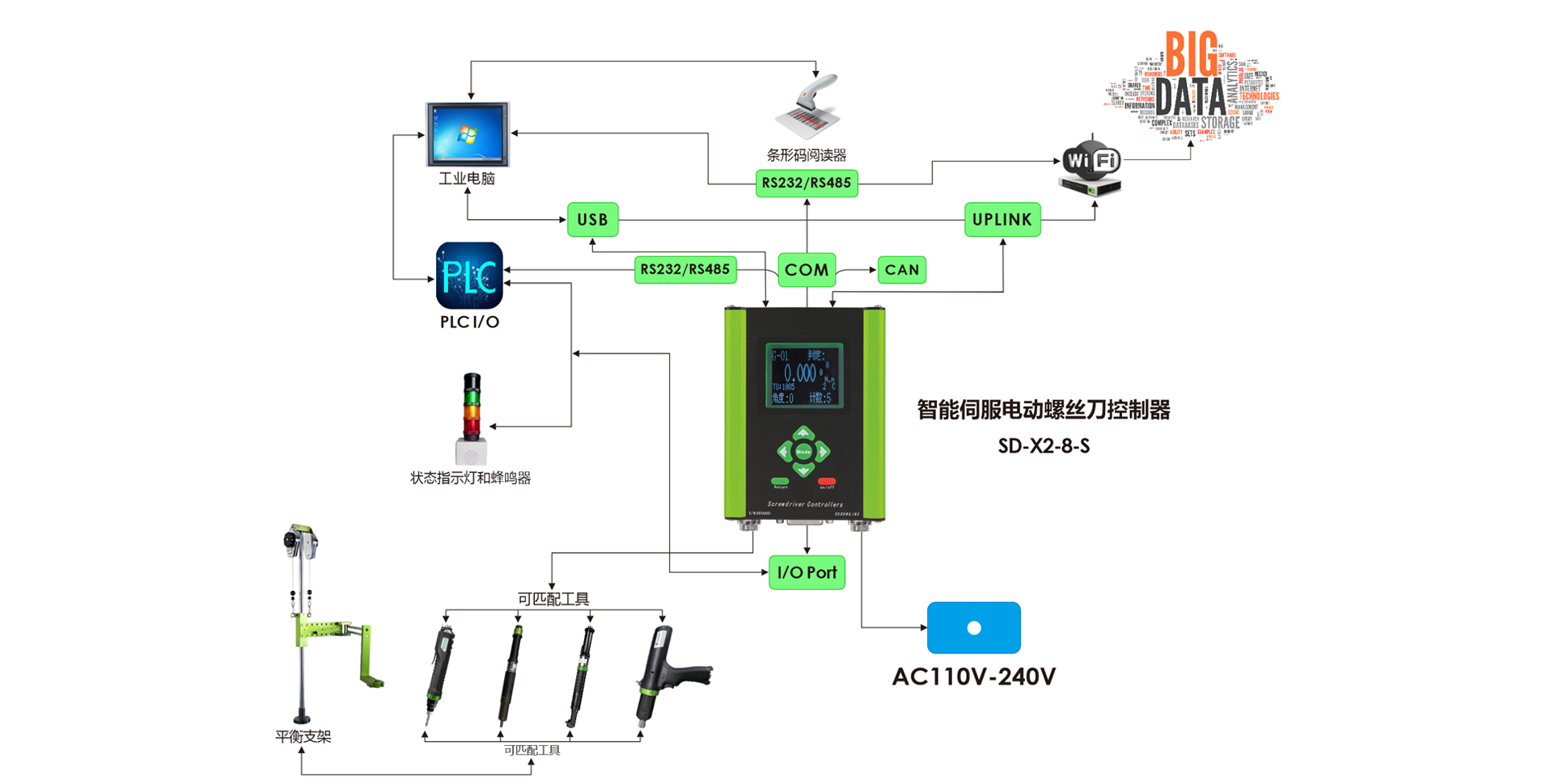 將條碼掃描器與控制器連接,確保數(shù)據(jù)可追溯性,防止操作員可能存在的錯(cuò)誤擰緊,可與生產(chǎn)管理系統(tǒng)進(jìn)行無障礙連接,全面監(jiān)測(cè)生產(chǎn)過程;