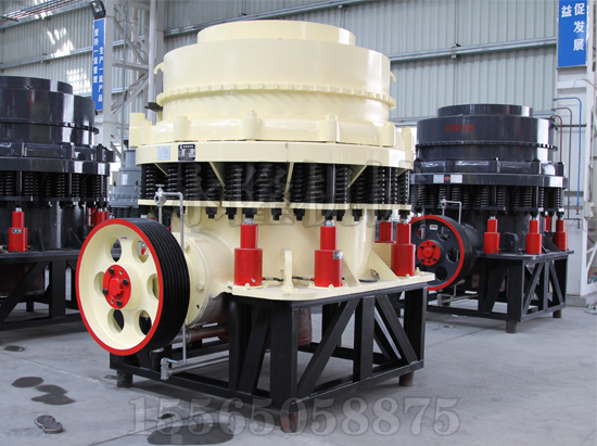 工作時,電動機的旋轉通過皮帶輪或聯軸器、圓錐破碎機傳動軸和圓錐破碎機圓錐部在偏心套的迫動下繞一周固定點作旋擺運動。從而使破碎圓錐的破碎壁時而靠近又時而離開固裝在調整套上的軋臼壁表面,使礦石在破碎腔內不斷受到沖擊,擠壓和彎曲作用而實現礦石的破碎。電動機通過傘齒輪驅動偏心套轉動,使破碎錐作旋擺運動。破碎錐時而靠近又時而離開固定錐,完成破碎和排料。
